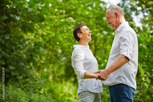 Lachende Senioren in der Natur