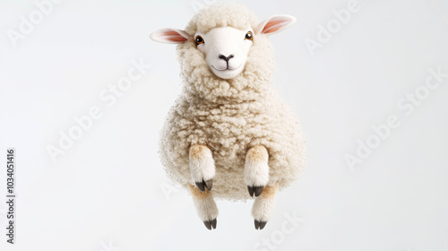 Adorable fluffy sheep floating in a clear sky on a white background, showcasing a whimsical and playful theme