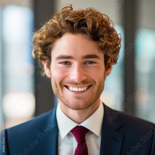 Portrait of a smiling Canadian financial planner in a modern office setting
