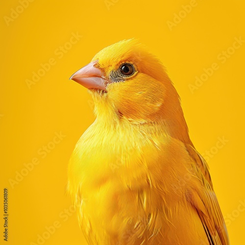 Portrait of a canary bird in a professional studio setting with vibrant yellow background capturing its vivid plumage and serene expression
