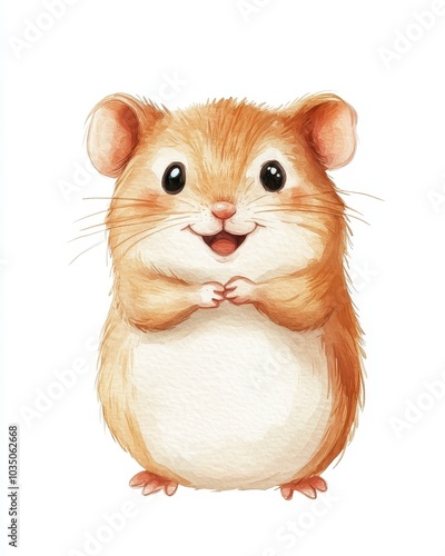 Adorable watercolor illustration of a happy hamster for children's nursery decor