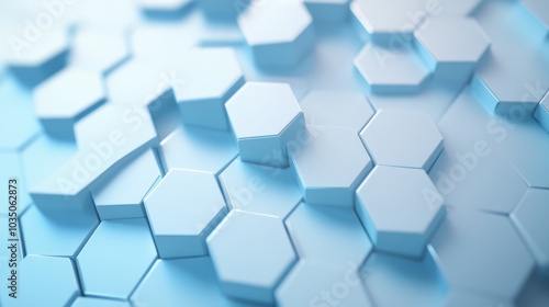 Futuristic abstract background with blue hexagonal shapes and modern geometric patterns in a sleek 3D rendering.