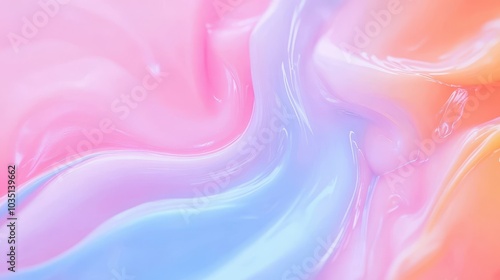Stunning abstract fluid artwork with flowing pastel colors in pink, blue, and orange creating a serene and calming visual experience