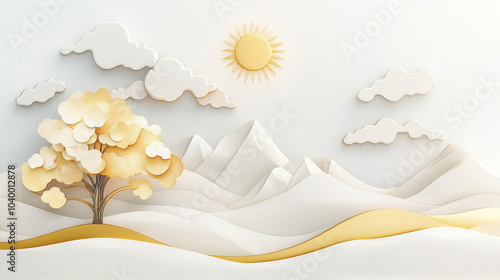 Colorful paper quilling art of an autumn tree with vibrant leaves and a serene landscape