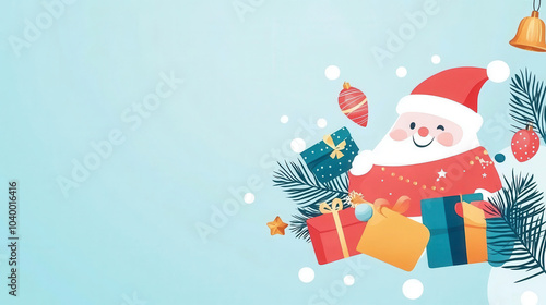 Festive Merry Christmas and Happy New Year with decorated fir branches and ornaments