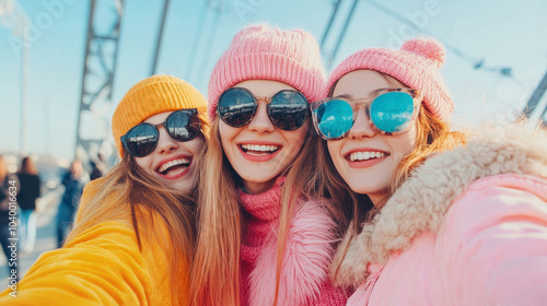 Happy friends in sunglasses enjoying a sunny day outdoors