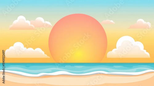 Stunning vector illustration of a sunset over the sea with mountains in the background