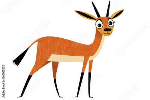Cute cartoon-style antelope illustration with playful and whimsical design for children's books and educational materials