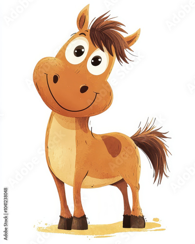 Adorable cartoon horse illustration in the style of children's books, inspired by playful and artistic animation designs