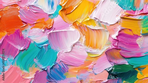 Vibrant hand-painted brush strokes with rich textures in a colorful abstract art composition
