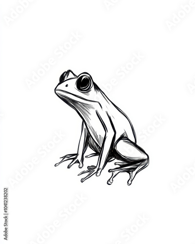 Minimalistic black ink drawing of a cute frog in a stick figure style, showcasing simplicity and artistic elegance.