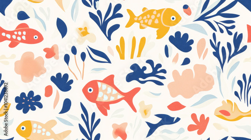 Colorful summer pattern with seafood and citrus elements perfect for fabric design and ocean-themed decorations