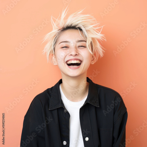 Stylish Japanese teenager with spiked blonde hair and casual fashion