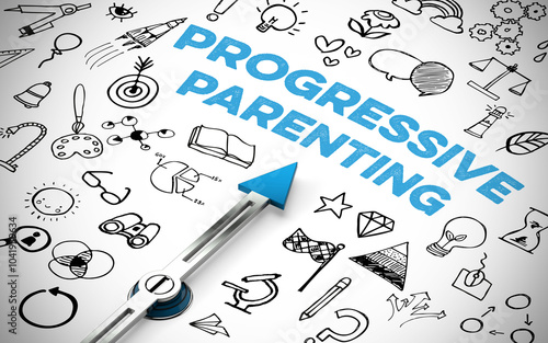 Kompass zeigt auf Schriftzug „Progressive Parenting“ als Konzept