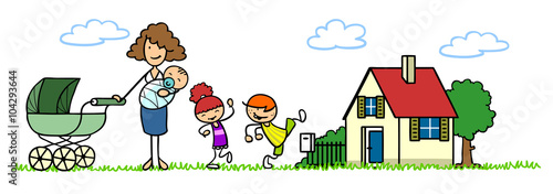 Gruppe Cartoon Kinder hängt an Leine als Trennlinie