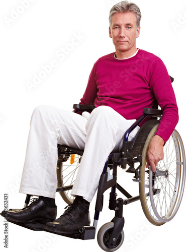Zufriedener Senior als Rollstuhlnutzer mit Muskel Armen