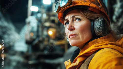 Group of miners in hard hats working in a dimly lit underground tunnel