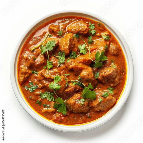 Savory vindaloo curry top view, professional Indian cuisine photography