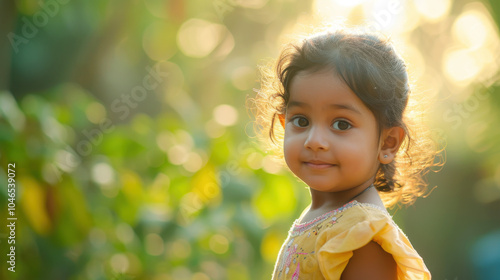 Bangladeshi child in traditional dress enjoying a sunny day outdoors