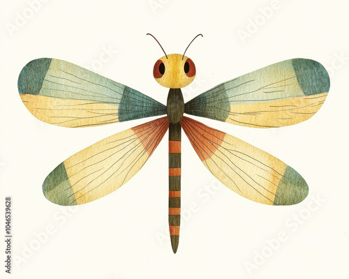 Charming cartoon dragonfly with a smile, featuring vibrant colors and playful design, ideal for children's books and educational materials