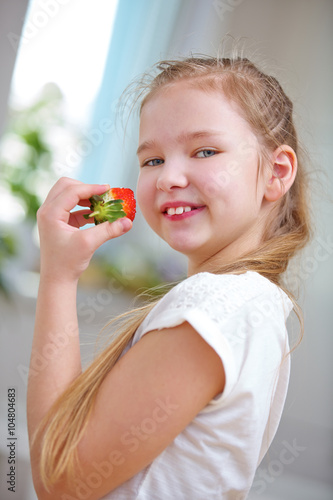 Lachendes Mädchen isst Erdbeere