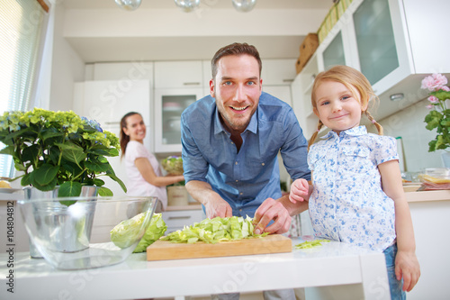 Familie in der Küche mit Salat