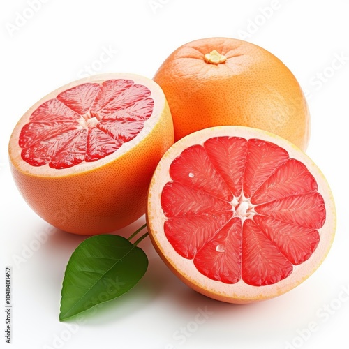 Slices of orange and citrus fruits with vibrant leaves on yellow background