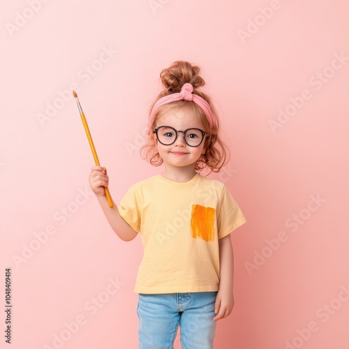 Adorable child with curly hair dressed as a secretary posing with confidence