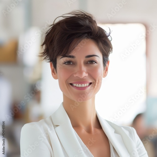 Confident Italian businesswoman in her 40s with a friendly smile in office environment