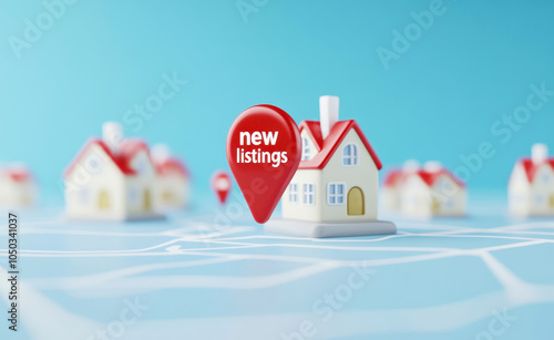 Close-up of a hand holding a red house icon surrounded by smaller houses