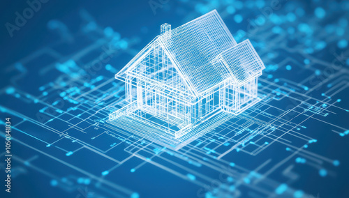 3D wireframe representation of an industrial plant on a white background showcasing complex architecture and engineering design.
