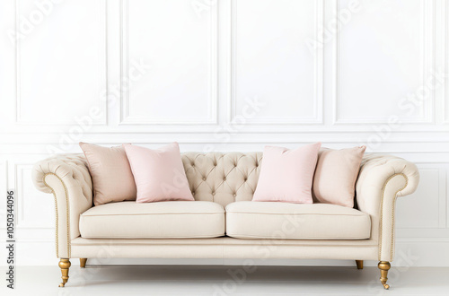 Bright pink sofa living room with turquoise wall, gold framed art, and stylish decor