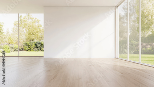 Modern minimalist interior with concrete walls and large floor-to-ceiling windows