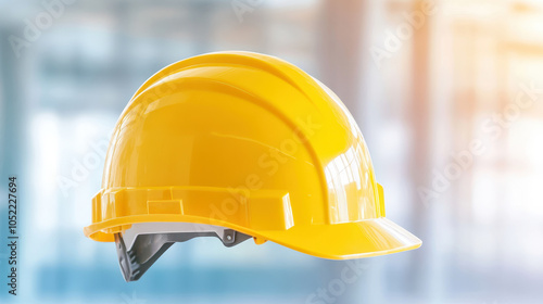 Bright yellow safety helmet on blurred construction background