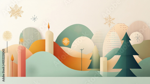 Art deco Christmas card design with abstract tree and candle
