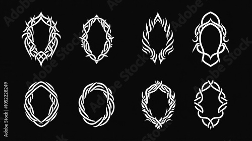 Collection of artistic hand-drawn hearts, crowns, and arrows in black ink style