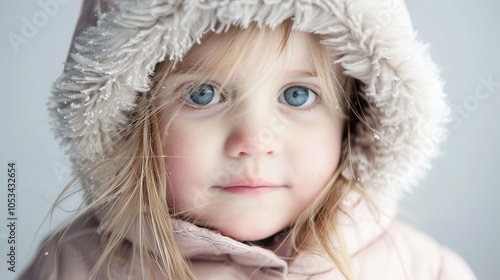Norwegian toddler girl in winter attire on plain background