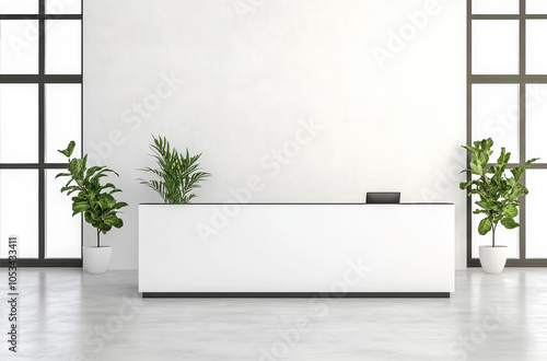 Modern reception desk in open-plan office with minimalist design