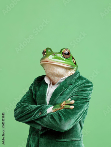 Stylish Green Frog Wearing a Patterned Suit in a Studio Portrait