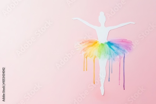 Watercolor silhouette of ballerina with rainbow tutu on pastel background