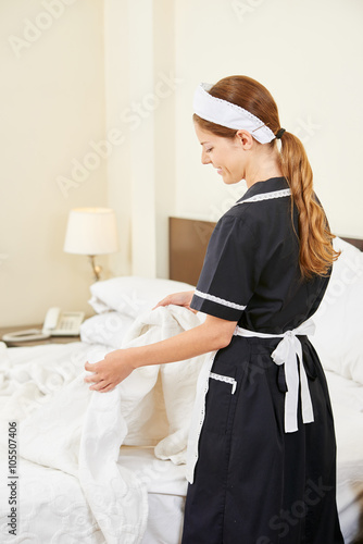 Zimmermädchen vor Tafel mit Muskel Armen als Service Konzept