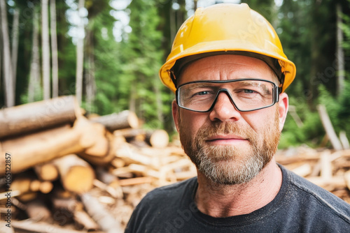 Close-up portrait of a focused construction worker in safety gear outdoors