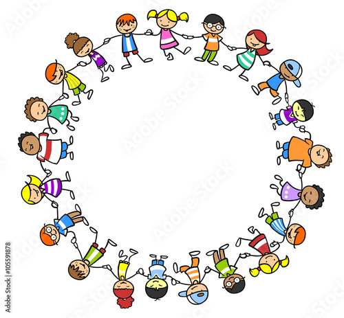 Große Gruppe Cartoon Kinder halten Hände im Kreis