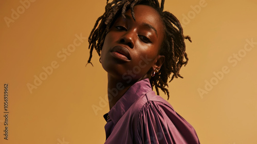 Confident Afro-Caribbean non-binary individual with a stylish look on a sunny day