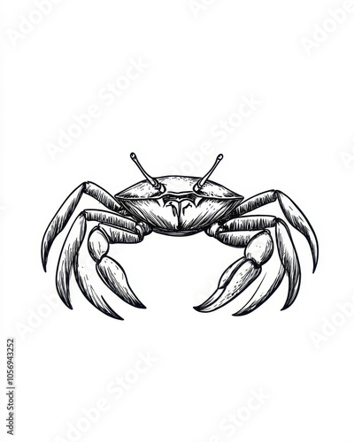 Minimalistic black ink drawing of a crab showcasing elegant simplicity and artistic flair