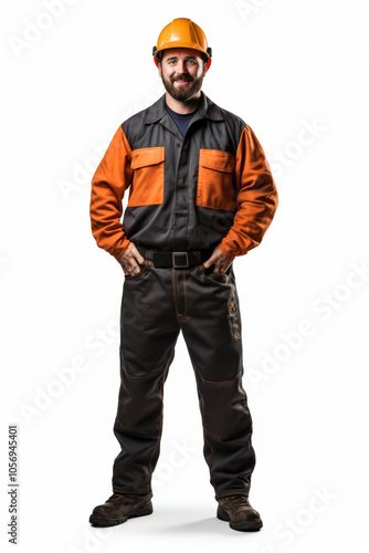 Friendly male coal miner wearing safety gear poses confidently in full body shot