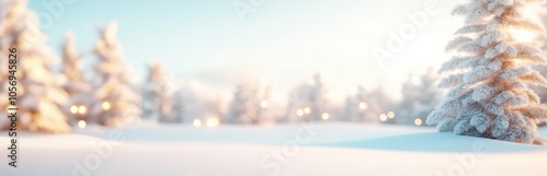 Serene winter landscape with pastel trees and glowing lights