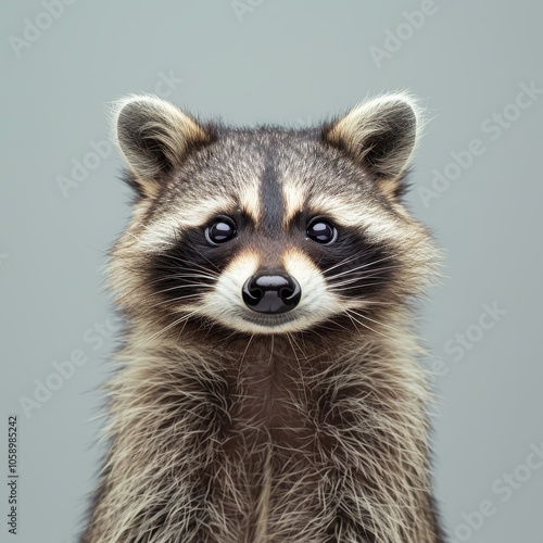 Charming raccoon portrait in studio showcasing detailed fur and expressive eyes, highlighting the raccoon's playful and inquisitive nature in a professional photography setting