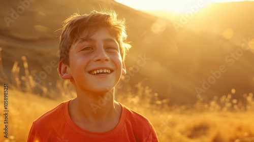 Teen boy enjoying sunset in the Georgian countryside, serene and thoughtful