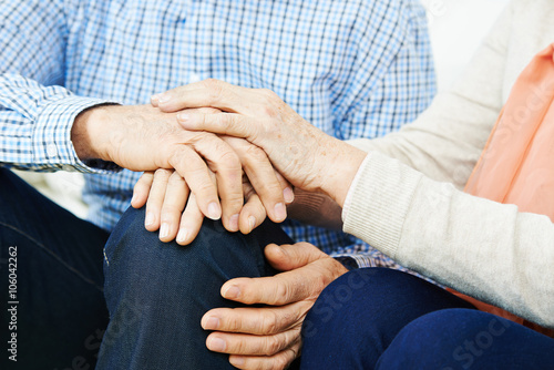 Lächelnde Frau umarmt Senior im Seniorenheim